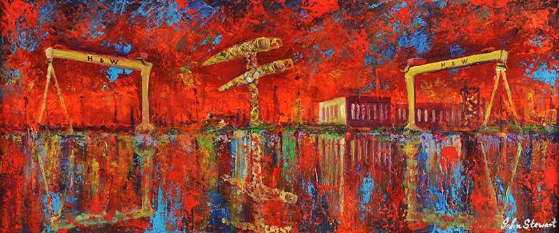 Keywords: John Stewart art, Belfast artist, original oil painting, Northern Ireland art, industrial heritage art, Harland & Wolff artwork, Belfast shipyard art, Irish artist, authentic Belfast artwork
